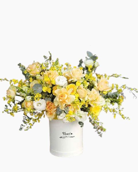 Hộp Hoa Hoa Trắng Mọng Hồng - HH68